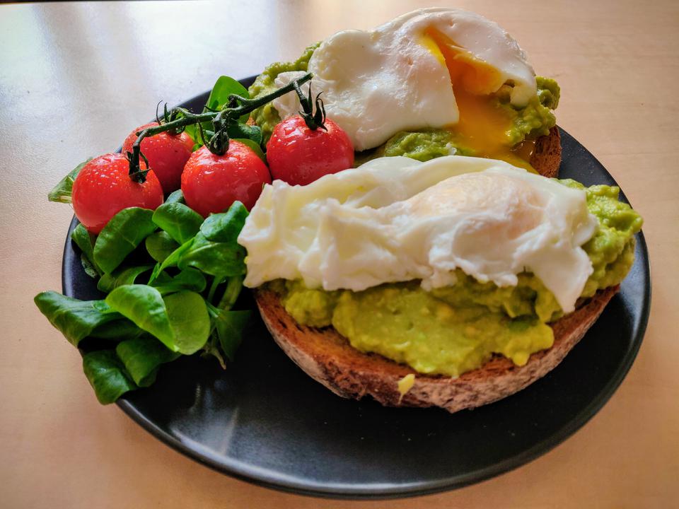Na toast rozetřeme pomazánku z avokáda, na něj položíme vejce. Osolíme a opepříme.